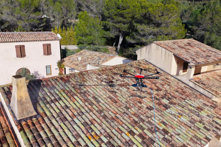 1 - Sécurité Maximale. C'est l'avantage n°1. Plus besoin de faire monter un technicien sur un toit glissant ou pentu. L'opérateur reste au sol et pilote le drone à distance. Les risques d'accidents du travail liés aux chutes de hauteur sont totalement éliminés.